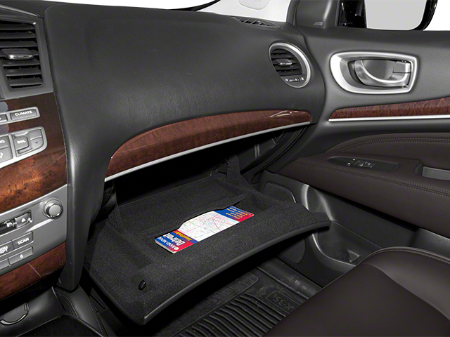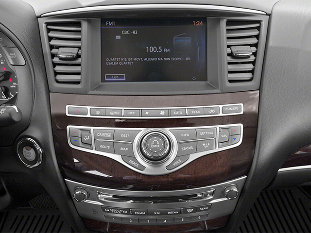 PREMIUM PKG INFINITI hard drive-based navigation system w/8 color touch-screen display, voice recognition, XM NavTraffic w/real-time traffic info, XM NavWeather w/real-time weather, Zagat Survey restaurant guide, INFINITI Connection w/1-year basic & Plus service subscriptions, Around View monitor w/front/rear sonar system, Bose (13) speaker audio system, AM/FM stereo w/CD/DVD/MP3 player, radio data system (RDS), speed-sensitive volume control, Bluetooth® streaming audio, front seat memory w/driver lumbar, steering wheel memory, exterior mirror memory, entry/exit assist, Intelligent Key, exterior mirrors w/reverse tilt-down, auto-dimming rear view mirror, HomeLink universal garage door opener, DRIVER ASSISTANCE PKG intelligent cruise control, intelligent brake assist (IBA) w/forward collision warning, blind spot warning system, back-up collision intervention, distance control assist, active trace control, eco pedal, heated steering wheel, remote engine start, THEATER PKG dual 7 color monitors, (2) wireless headphones, wireless remote control, aux audio/video input jacks, 120V pwr outlet, rear headphone jacks w/volume control, MAPLE ACCENTS PKG maple interior accents. INFINITI JX35 with Moonlight White exterior and Graphite interior features a V6 Cylinder Engine with 265 HP at 6400 RPM*.