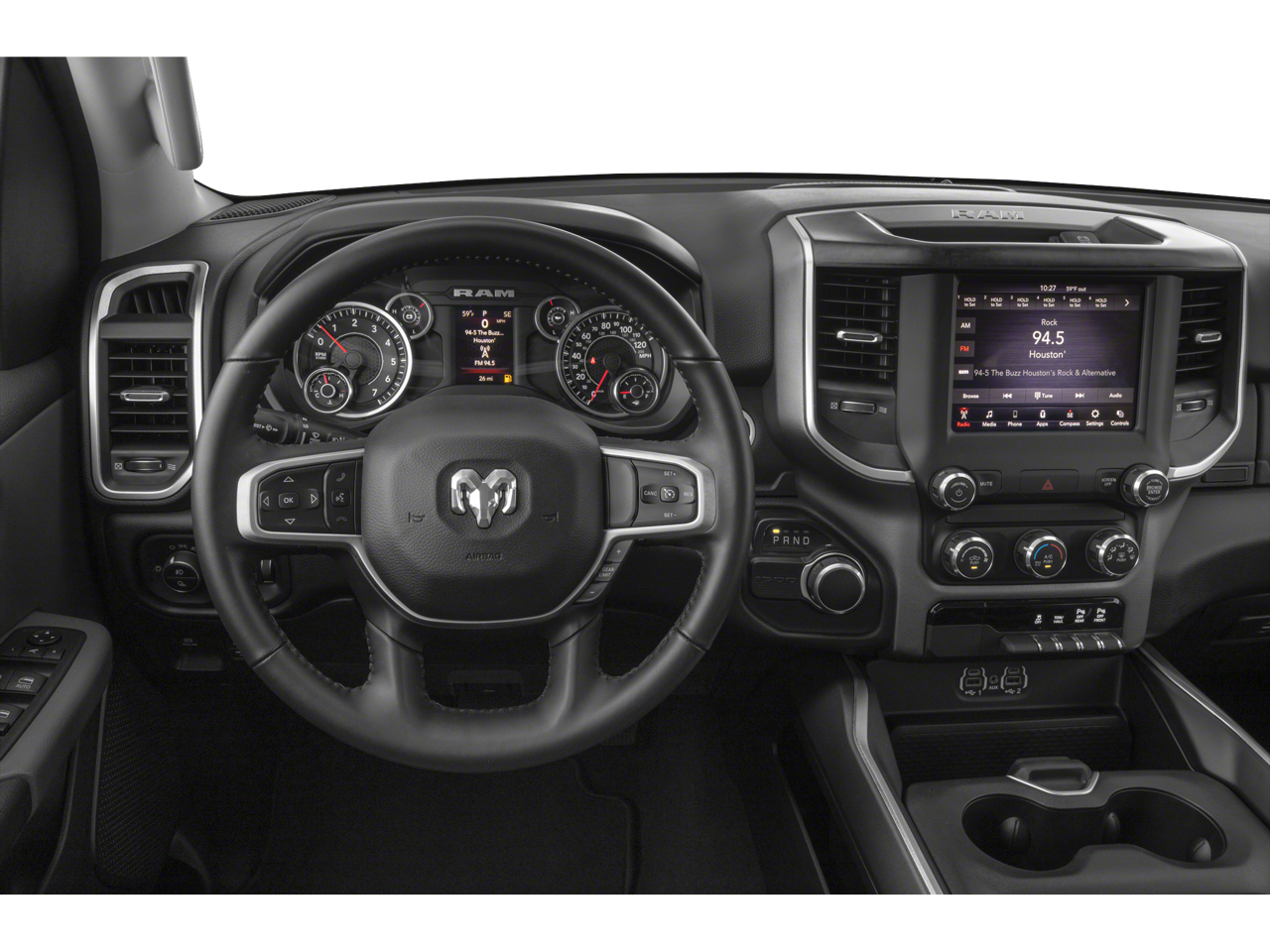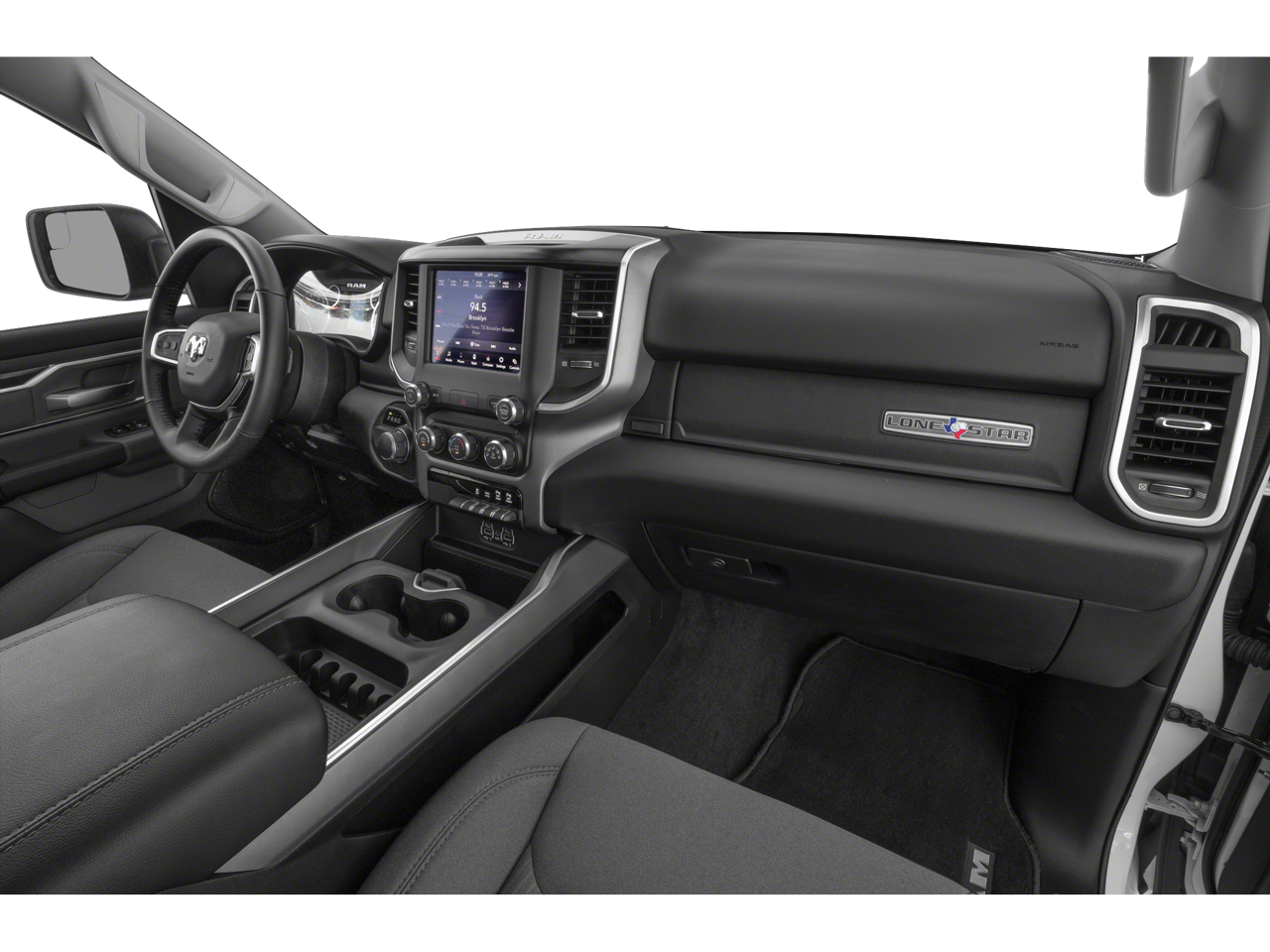 BIG HORN LEVEL 2 EQUIPMENT GROUP Radio: Uconnect 4 w/8.4 Display, Rear Window Defroster, Integrated Center Stack Radio, ParkSense Front/Rear Park Assist w/Stop, Rear View Auto Dim Mirror, Power Adjustable Pedals, Rear Power Sliding Window, Rear Dome w/On/Off Switch Lamp, Glove Box Lamp, Power 4-Way Driver Lumbar Adjust, 115V Auxiliary Rear Power Outlet, Power 8-Way Driver Seat, 2 USB Full Function/Charge Only Media Hub, Heated Front Seats, Heated Steering Wheel, 8.4 Touchscreen Display, Foam Bottle Insert (Door Trim Panel), Class IV Receiver Hitch, Dampened Tailgate, Security Alarm, Power Heated Fold Away Mirrors, Big Horn IP Badge, Remote Start System, SiriusXM Satellite Radio, 400W Inverter, Air Conditioning ATC w/Dual Zone Control, 115V Auxiliary Power Outlet, Cluster 7.0 TFT Color, BLACK APPEARANCE PACKAGE Tires: 275/55R20 OWL All Season, Exterior Mirrors w/Supplemental Signals, Black Headlamp Bezels, Power Heated Fold-Away Mirrors, Body Color Door Handles, Exterior Mirrors Courtesy Lamps, Auto Dim Exterior Driver Mirror, Black Exterior Truck Badging, Exterior Mirrors w/Memory, Grille B/Color Outline 1 Texture 2, Black Interior Accents, Dual Exhaust w/Black Tips, Power-Folding Mirrors, Body Color Front Bumper, Wheels: 20 x 9 Cast Aluminum Black, Body Color Rear Bumper w/Step Pads, DUAL-PANE PANORAMIC SUNROOF Premium Overhead Console, Dome Dual LED Reading Lamp, Overhead LED Lamps, ENGINE: 5.7L V8 HEMI MDS VVT Active Noise Control System, 180 Amp Alternator, Heavy Duty Engine Cooling, GVWR: 7,100 lbs, Dual Rear Exhaust w/Bright Tips, Hemi Badge, PREMIUM LIGHTING GROUP Front LED Fog Lamps, LED Reflector Headlamps, LED Taillamps, RADIO: UCONNECT 4C NAV W/8.4 DISPLAY Google Android Auto®, SiriusXM Traffic Plus, SiriusXM Satellite Radio, Disassociated Touchscreen Display, HD Radio, For Details, Visit DriveUconnect.com, Integrated Center Stack Radio, For More Info, Call 800-643-2112, 1-Yr SiriusXM Guardian Trial, Air Conditioning ATC w/Dual Zone Control, GPS Navigation, SiriusXM Travel Link, No Satellite Coverage w/HI/AK/PR/VI/GU, 8.4 Touchscreen Display, Apple CarPlay®, ANTI-SPIN DIFFERENTIAL REAR AXLE, QUICK ORDER PACKAGE 25Z BIG HORN/LONE STAR Engine: 5.7L V8 HEMI MDS VVT, Transmission: 8-Speed Automatic (8HP75), Steering Wheel Mounted Audio Controls, TRANSMISSION: 8-SPEED AUTOMATIC (8HP75), BLACK, DELUXE CLOTH BUCKET SEATS Power 8-Way Driver Seat, Center Console Parts Module, Bucket Seats, Manual Adjust 4-Way Front Passenger Seat, Full Length Floor Console, Power 4-Way Driver Lumbar Adjust. Ram Big Horn/Lone Star with Diamond Black Crystal Pearlcoat exterior and Black interior features a 8 Cylinder Engine with 305 HP at 6400 RPM*.